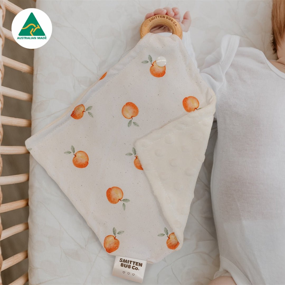 Crafted from soft jersey stretch and tactile minky dot fabric and paired with a natural beechwood teething ring, it’s lightweight, cozy, and comforting - perfect for snuggles, naps, and soothing on the go.