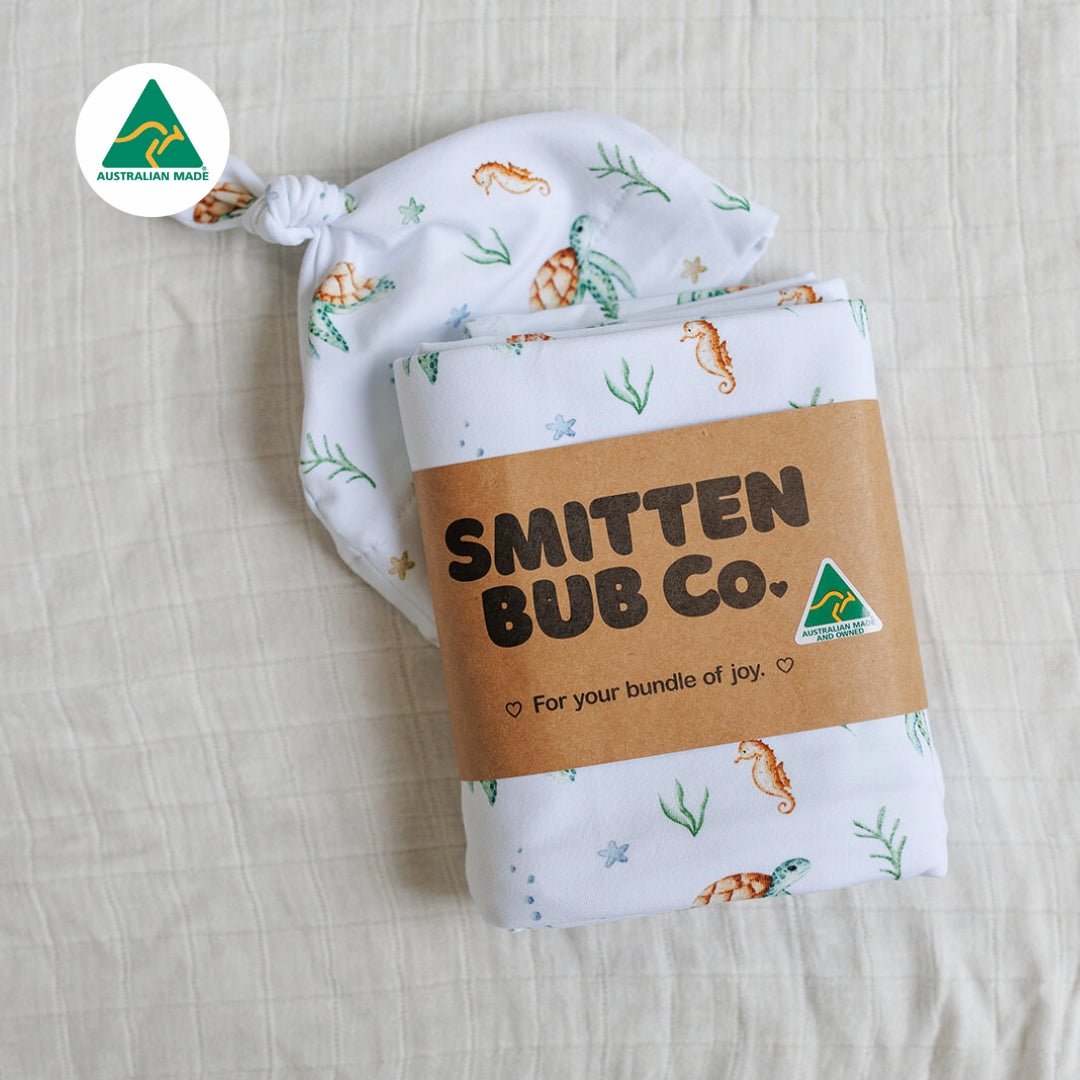 Wrap your baby in the gentle magic of the ocean with our Green Turtles Swaddle. The dreamy watercolor design features graceful sea turtles, playful seahorses, striped reef fish, and delicate starfish among calming sea plants in soft, gender-neutral hues.