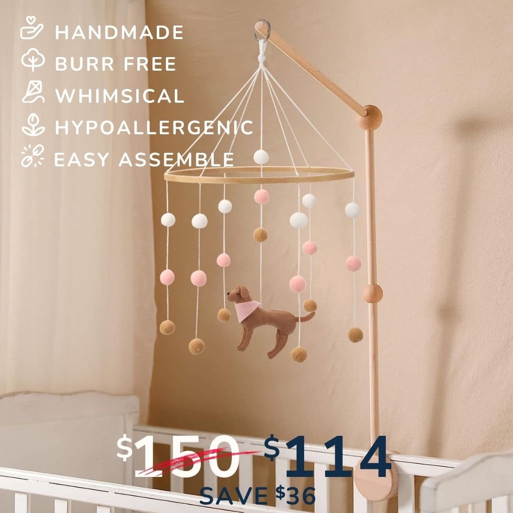 Add a touch of calm and whimsy to your nursery with our handcrafted felt cot mobile and arm bundle.