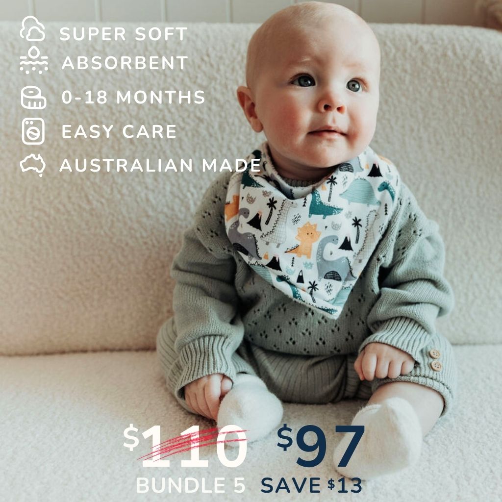 Proudly made right here in Australia with premium, soft fabrics gentle on delicate skin, they’re designed to catch dribbles, spills, and mess while protecting baby’s skin and clothes.
