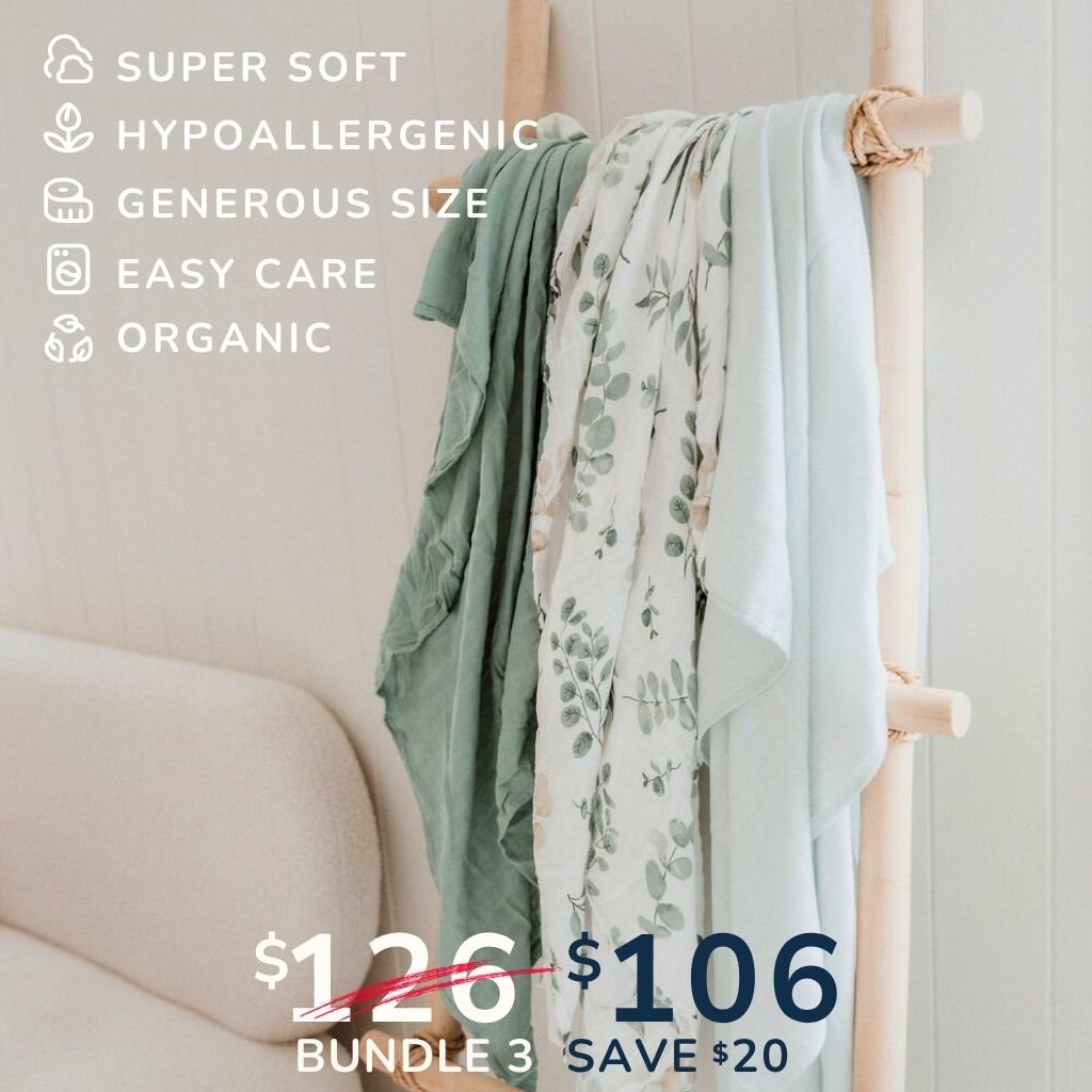 Choose three designs from our beautiful range of silky-soft bamboo and organic cotton muslin swaddles - the perfect way to snuggle your little one, the natural way. 💛